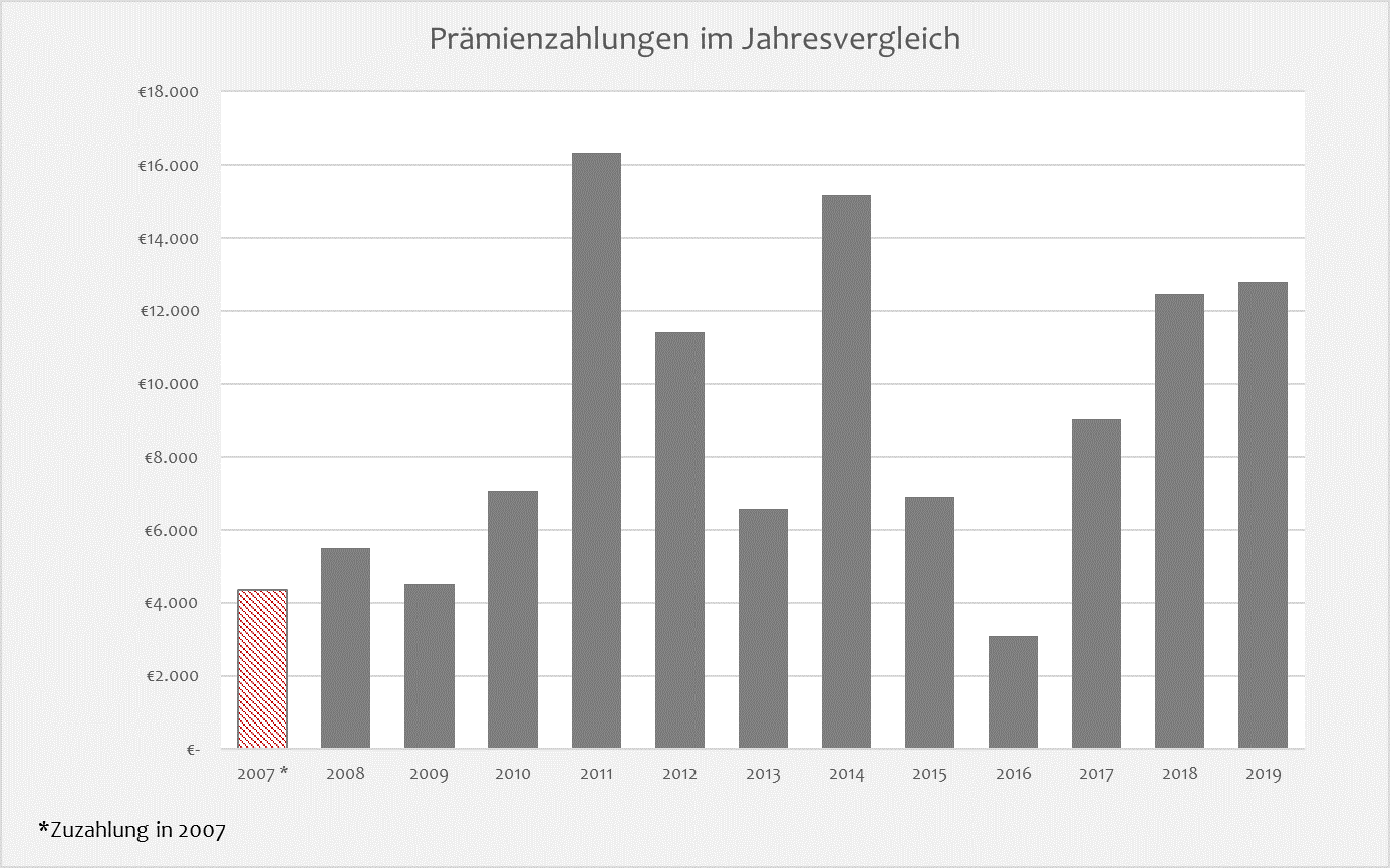 Entwicklung der Prämienzahlungen für den Fachbereich seit Einführung 2007 im Jahresvergleich