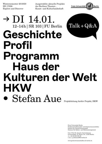 In diesem Hauptseminar des MA Studiengangs Kultur- und Medienmanagement werden ausgewählte aktuelle Projekte der Berliner Theater-, Kunst und Kulturlandschaft vorgestellt und diskutiert.
