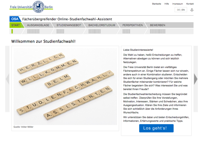 To make it easier for you to choose your field of study, Freie Universität Berlin has developed a self-test program for B.A. programs – the Online Study-Choice Assistant (OSA) – where prospective students can explore what degree program suits them.