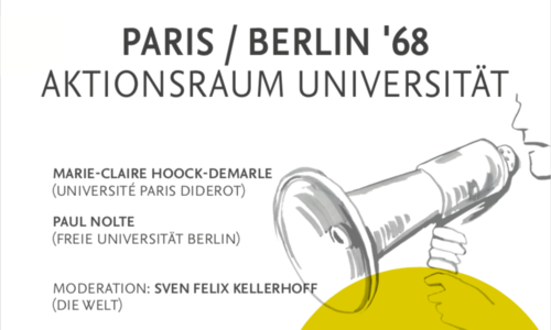 Anlässlich des 50-jährigen Jubiläums der Ereignisse rund um die Studierendenrevolten im Mai '68 lädt das Frankreichzentrum Sie herzlich zu einer table ronde ein. Am 28. Mai 2018 diskutieren die Historiker Marie-Claire Hoock-Demarle (Université Denis Diderot, Paris 7) und Paul Nolte (Freie Universität Berlin) die Konflikte und Folgen der Revolten exemplarisch am Beispiel des Aktionsraums Universität und in deutsch-französischer Perspektive. Die Veranstaltung wird von dem Berliner