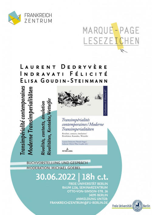 Laurent Dedryvére, Indravati Félicité und Élisa Goudin stellen am 30. Juni 2022 (18h c.t.) die Genese, wesentliche Thesen und einzelnen Beiträge des Bandes gemeinsam vor. Die Buchbesprechung wird von Michael Goebel, Einstein Professor für Globalgeschichte an der Freien Universität Berlin moderiert.