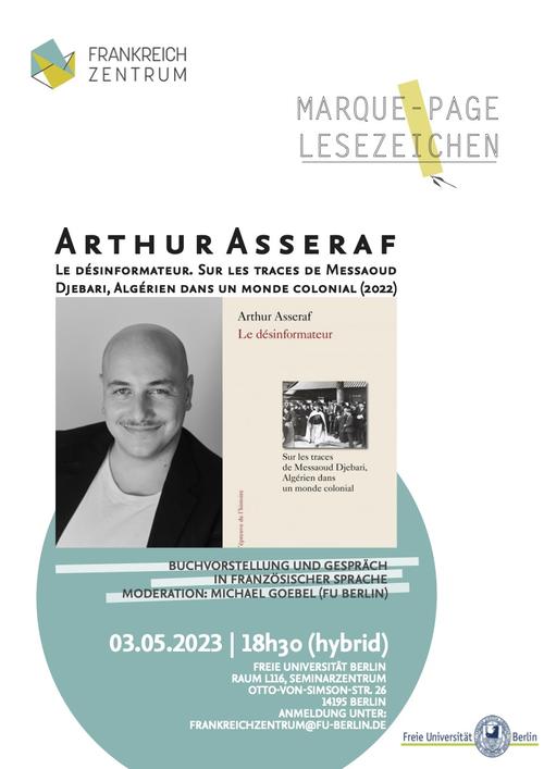 Am 3. Mai 2023 veranstalten wir eine Buchvorstellung mit dem Historiker Arthur Asseraf (University of Cambridge). In seinem 2022 erschienenen Buch Le désinformateur. Sur les traces de Messaoud Djebari, Algérien dans un monde colonial (Fayard) schildert er den Werdegang von Messaoud Djebari, der es während der Belle Époque auf die Titelseiten der Pariser Zeitungen schaffte und für kurze Zeit zum berühmtesten Algerier der Welt avancierte. Nach seiner Rückkehr von einer Expedition in Westafrika hatte dieser berichtet, auf französische Überlebende einer verschwundenen Mission gestoßen zu sein. Seine spektakuläre Geschichte warf jedoch bald Fragen auf: War er als Forscher, Dolmetscher und Aktivist ein Lügner? Arthur Asseraf zeichnet das Schicksal dieses rätselhaften Mannes nach, der als Algerier im Dienste Frankreichs Politik und Medien manipulierte und damit vor allem eines war: ein Meister der Desinformation. Damit stellen sich dem Historiker Fragen zur Produktion von Wahrheit in kolonialen Kontexten, aber auch zum eigenen Umgang mit Informationen und Quellen heute, denen er in seiner unkonventionellen Studie nachgeht.