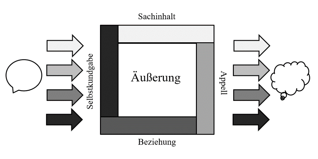 Das Vier-Seiten-Modell, das in den siebziger Jahren vom Psychologen und Kommunikationswissenschaftler Friedemann Schulz von Thun entwickelt wurde, bietet für die Beantwortung dieser Frage einen möglichen Analyserahmen. Nach Schulz von Thun kann jede Äußerung auf vier Ebenen verstanden werden: als Information, als Selbstoffenbarung, als Appell oder als Aussage über die Beziehung zwischen den kommunizierenden Personen.