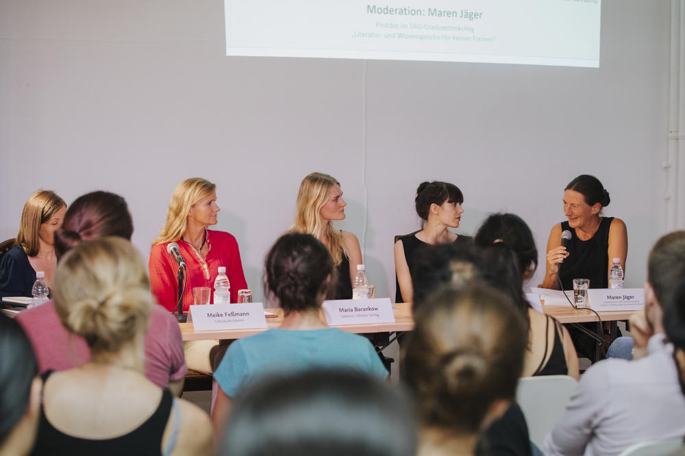 Am Abend des 26.07.2018 fand im Rahmen der FSGS-Summer School „Genre Trouble – Poetik und Politik der Gattungen“ eine Podiumsdiskussion in der Lettrétage Berlin zum Thema „'... aber ist es denn auch ein Roman?' Gattungen und die Logik des Buchmarkts“ statt. Dazu diskutierten Maria Barankow, Meike Feßmann, Claudia Hamm und Martina Wunderer, Moderation: Maren Jäger.
