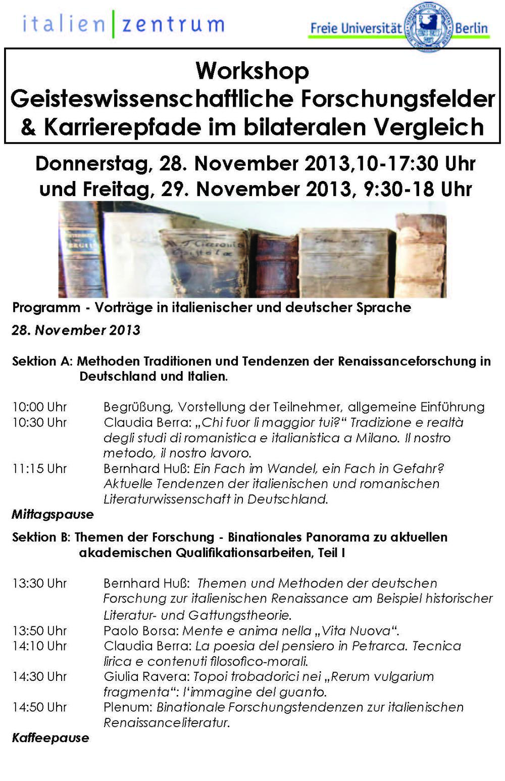 13:30 Bernhard Huß: Temi e metodi della ricerca tedesca sul Rinascimento italiano sull´esempio della letteratura storica e della teoria dei generi
