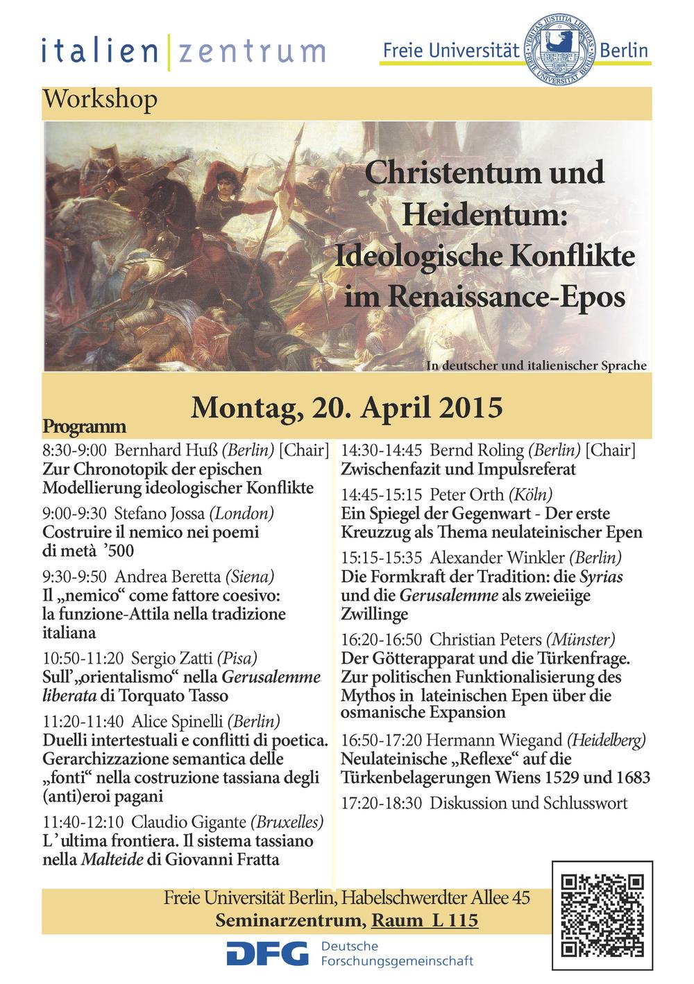 11:20-11:40 Alice Spinelli (Berlin) Duelli intertestuali e conflitti di poetica. Gerarchizzazione semantica delle „fonti“ nella costruzione tassiana degli (anti)eroi pagani
