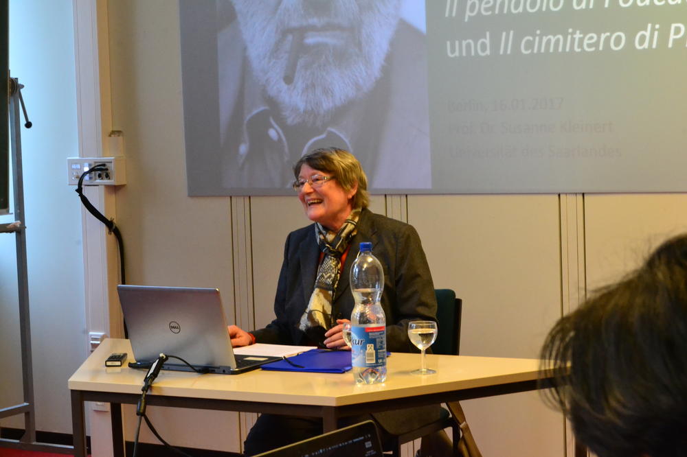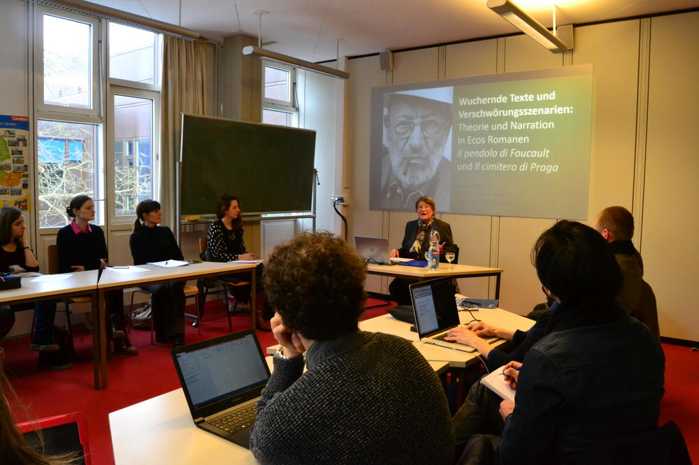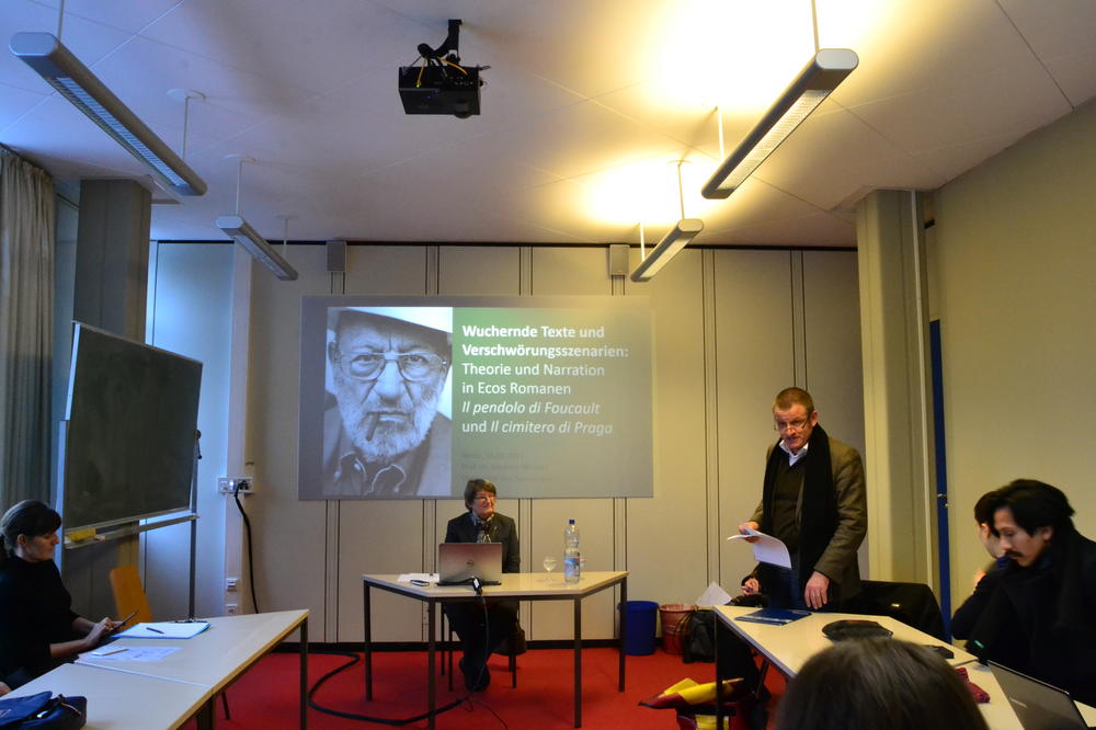 Intervento di Prof. Dr. Susanne Kleinert (Universität des Saarlandes): Wuchernde Texte und Verschwörungsszenarien: Theorie und Narration in Ecos Romanen "Il pendolo di Foucault" und "Il cimitero di Praga"