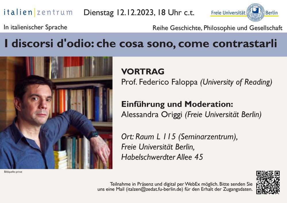 Partecipazione possibile in presenza e online via WebEx. Si prega di inviarci una e-mail (italzen@zedat.fu-berlin.de) per ricevere le credenziali di accesso.