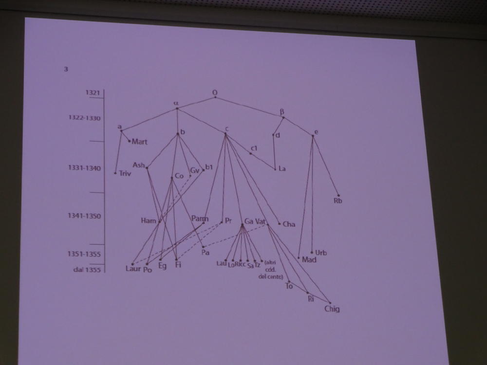 Come succede per moltissimi altri scrittori dell'antichità o del Medioevo o del Rinascimento, di Dante non abbiamo neanche una riga autografa. In tutti questi casi abbiamo solo copie che sono più o meno fedeli, perché è difficile copiare un'opera lunga senza commettere un certo numero di errori, a volte molto gravi. Di conseguenza, il testo della Bibbia, quelli di Virgilio, Ovidio, Cicerone, quello di Dante sono, in parte, frutto di ipotesi ricostruttive a partire dal confronto dei manoscritti. Nel caso di Dante il confronto si è limitato a lungo solo a una piccolissima parte (al massimo il 5%) delle copie manoscritte superstiti, che sono 580. Le edizioni degli ultimi 50 anni si limitano tutte alla ricostruzione di Giorgio Petrocchi del 1966-1967. Ma l'estensione della ricerca a tutti i 580 manoscritti, portata avanti a Ferrara dal 2003 dal professor Paolo Trovato e altri collaboratori, ha permesso di prendere in considerazione varianti testuali in precedenza ignote agli studiosi, che almeno in qualche caso sembrano preferibili a quelle del testo oggi in uso.