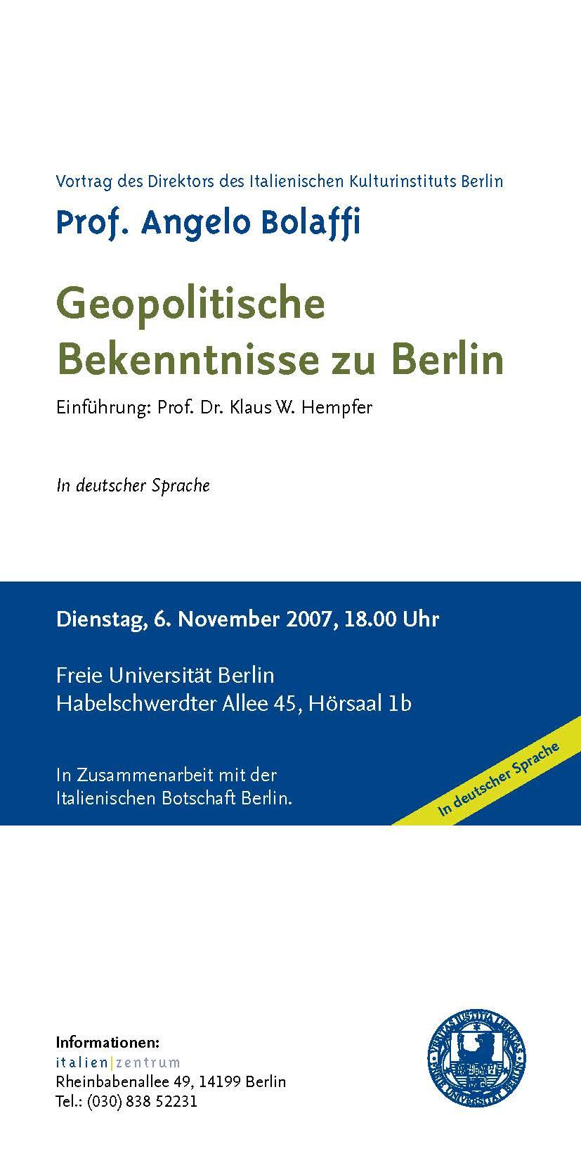 Dozent: Prof. Angelo Bolaffi