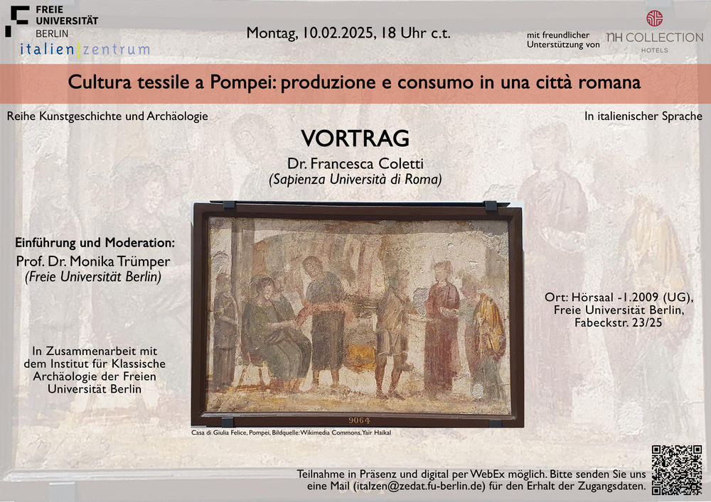 Teilnahme in Präsenz und digital per WebEx möglich. Bitte senden Sie uns eine Mail (italzen@zedat.fu-berlin.de) für den Erhalt der Zugangsdaten.