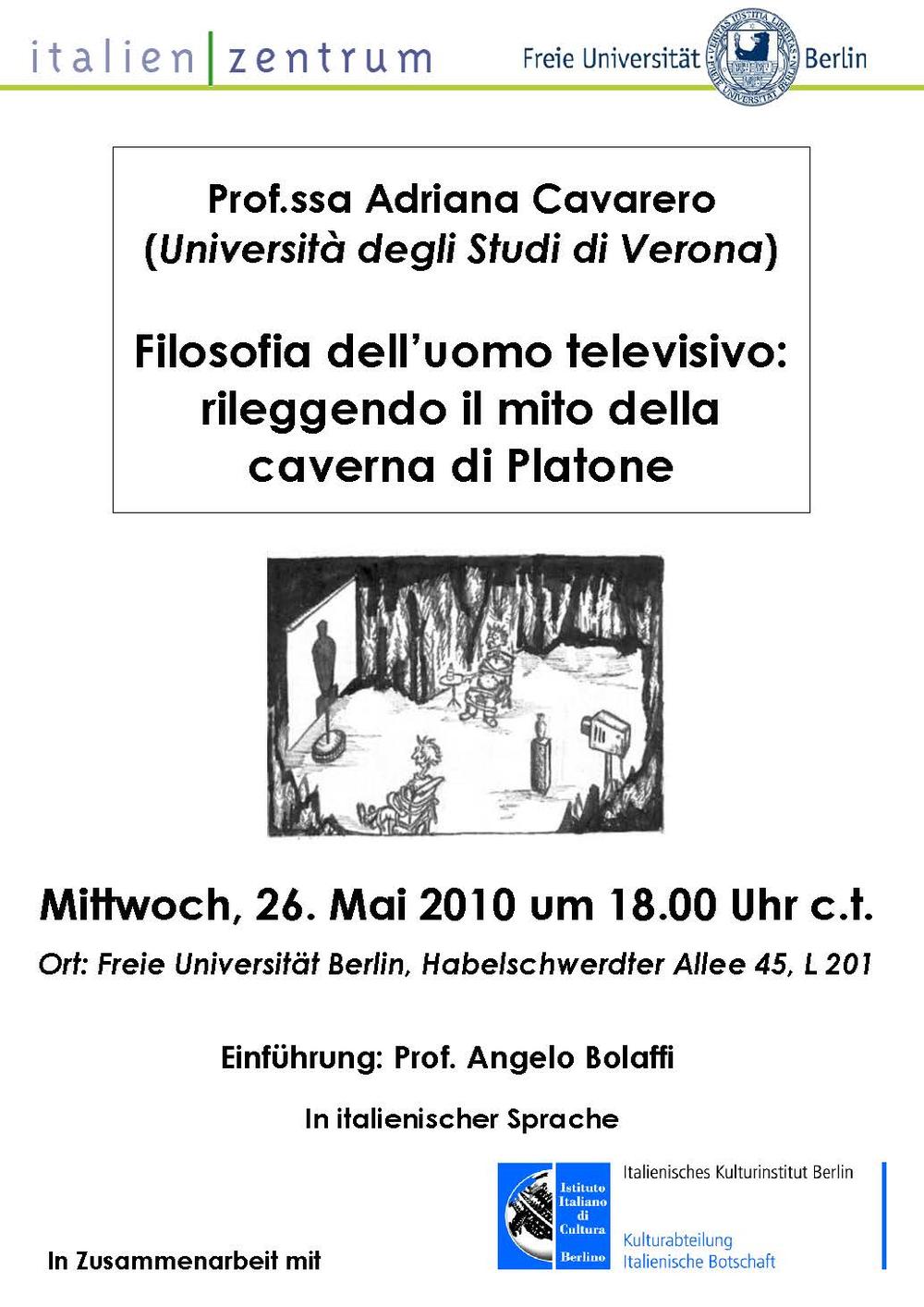 Reihe Philosophie heute - Prof.ssa Adriana Cavarero (Università degli studi di Verona): Filosofia dell'uomo televisivo: rileggendo il mito della caverna di Platone