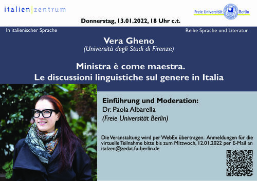 Die Veranstaltung wird per WebEx übertragen. Für eine virtuelle Teilnahme bitten wir Sie, sich bis zum 12. Januar per Mail anzumelden (italzen@zedat.fu-berlin.de).