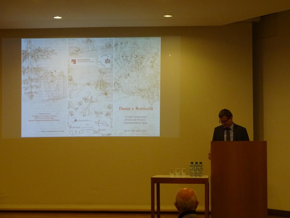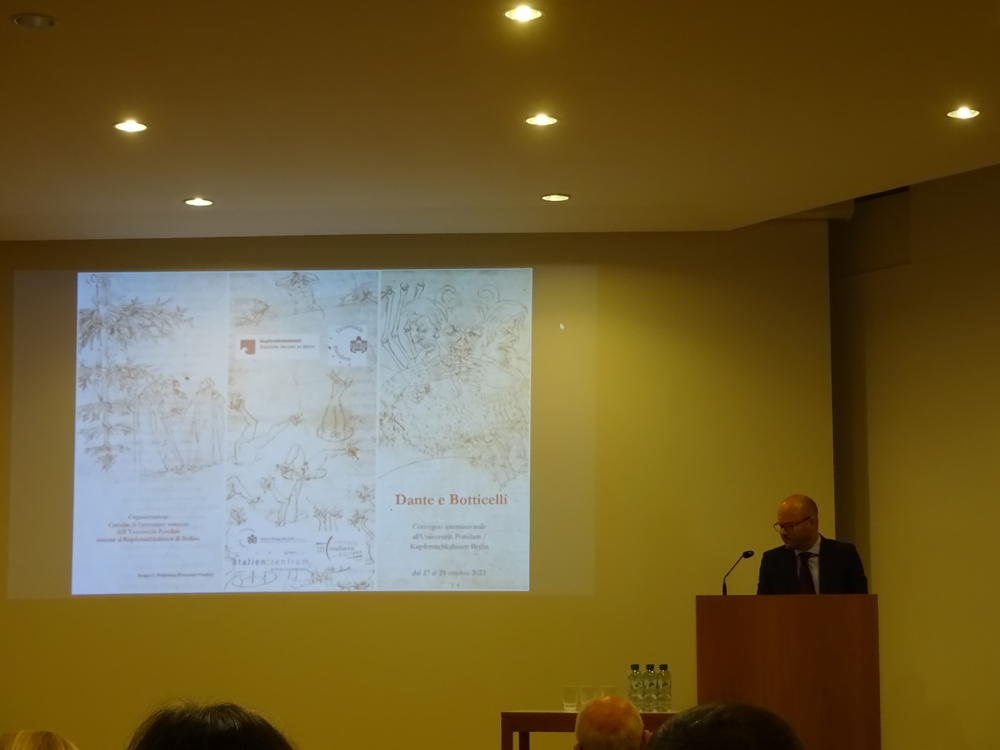 | 9:15 | Begrüßung: Prof. Dr. Maria Carolina Foi (Direktorin des Italienischen Kulturinstituts Berlin), Prof. Dr. Bernhard Huss (Direktor des Italienzentrums der Freien Universität Berlin) und PD Dr. Karl Philipp Ellerbrock (Präsident der Deutschen Dante-Gesellschaft) |