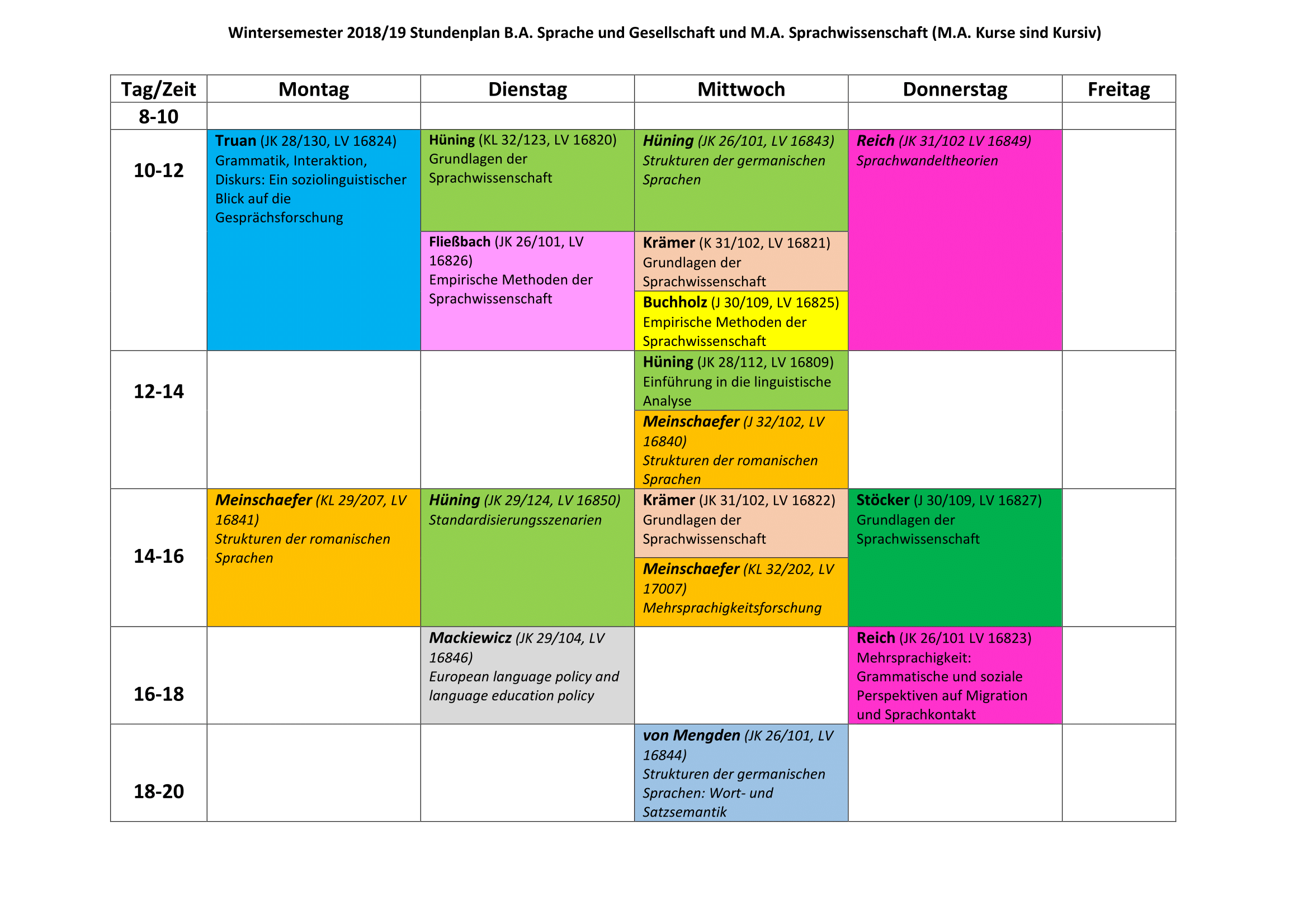Bitte nutzen Sie die Filterfunktion des VVZ, um nur die sprachwissenschaftlichen Lehrveranstaltungen zu sehen.