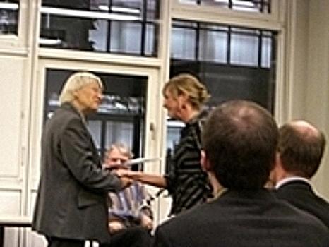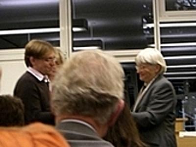 Gisela Klann-Delius, stellvertretende Direktorin des Instituts für Deutsche und Niederländische Philologie, hält am Donnerstag, 11. Oktober 2007, bei der Verabschiedung von zahlreichen jungen Germanisten und Niederlandisten ins Berufsleben, den Festvortrag „Von tierischen Hürden, spiegelnden Neuronen und Symbolen menschlicher Imagination.“
