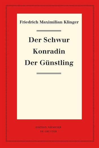Die durch diesen Band wieder zugänglich gemachten Dramen „Der Schwur", „Konradin" und „Der Günstling" sind von Eindrücken und Anregungen inspiriert, die Klinger im Gefolge des russischen Großfürsten Paul auf dessen 1781/82 unternommener Reise durch Europas Metropolen gesammelt hatte, und von seiner Kenntnis der Günstlingswirtschaft am Hof Katharinas der Großen. Einen Schwur gegen die Ehe nimmt Klinger in seiner Komödie zum Anlass, Sitte und Moral der adligen Gesellschaft im damaligen Wien zu schildern, und mit der Tragödie „Konradin" leistet er einen Beitrag zum historischen Schauspiel, das sich zur Zeit der Entstehung des Dramas im Aufschwung befand. Selbst wenn in „Der Günstling" die Andeutungen auf Geschehnisse im Umfeld der Zarin kaum zu übersehen sind, betont Klinger in einer Vorbemerkung den exemplarischen Charakter seines Stücks, dessen Schauplatz er deshalb und auch um bei Hof nicht Anstoß zu erregen, ins mittelalterliche Spanien verlegt. Alle drei Dramen sind 1786 und 1787 zuerst in der Sammlung „Theater" erschienen.
