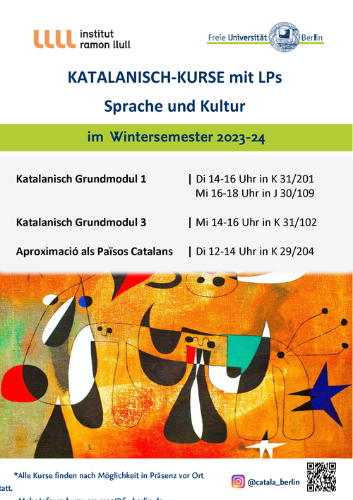 Genaue Informationen zu den Kursen erhalten Sie von Maria Burguera Mas: m.burguera.mas@fu-berlin.de.